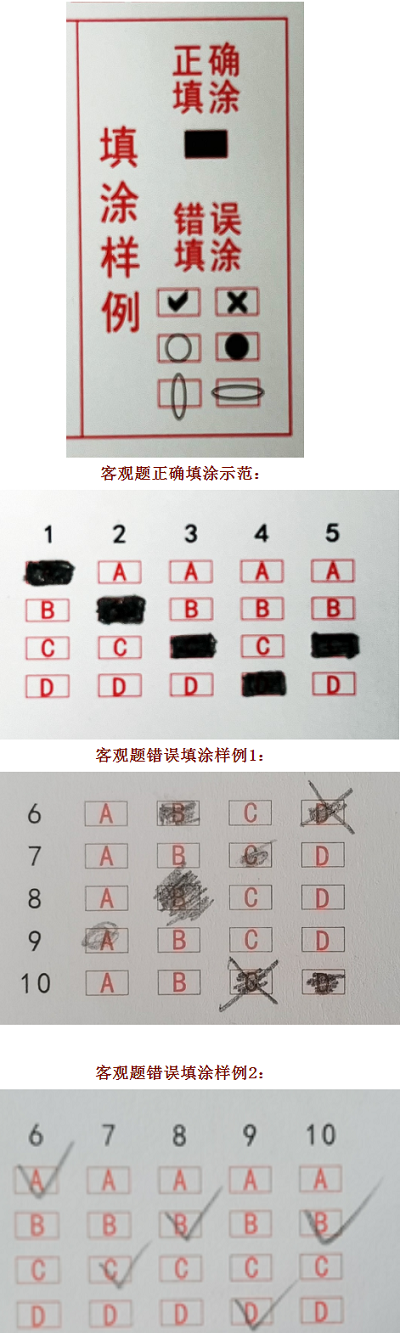 客觀題填涂時,應注意將試題題號與答題卡題號對應,準確填涂,要涂黑、涂滿、涂勻,切勿涂串行。已填涂的答案如需改動,應用橡皮擦干凈后再選涂另一選項。